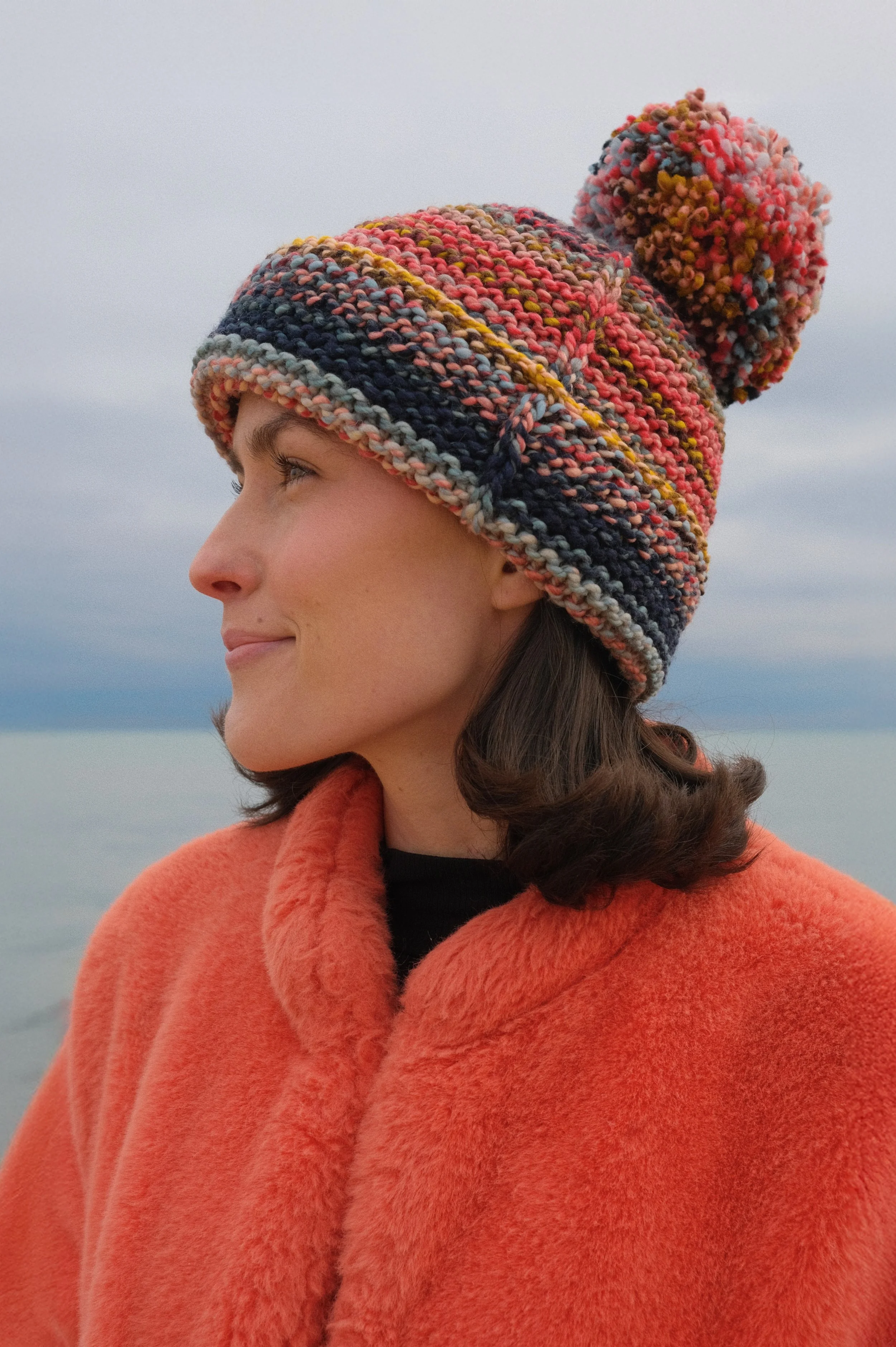 This simple, garter stitch hat is knit in the round from the brim up with subtle side seam detailing. The texture of garter stitch adds extra gush to this hat and the folded up brim adds extra warmth. The perfect project to show off some special skeins of yarn or to play with your scraps and stash. Add a pom pom for MAXIMUM GUSH!